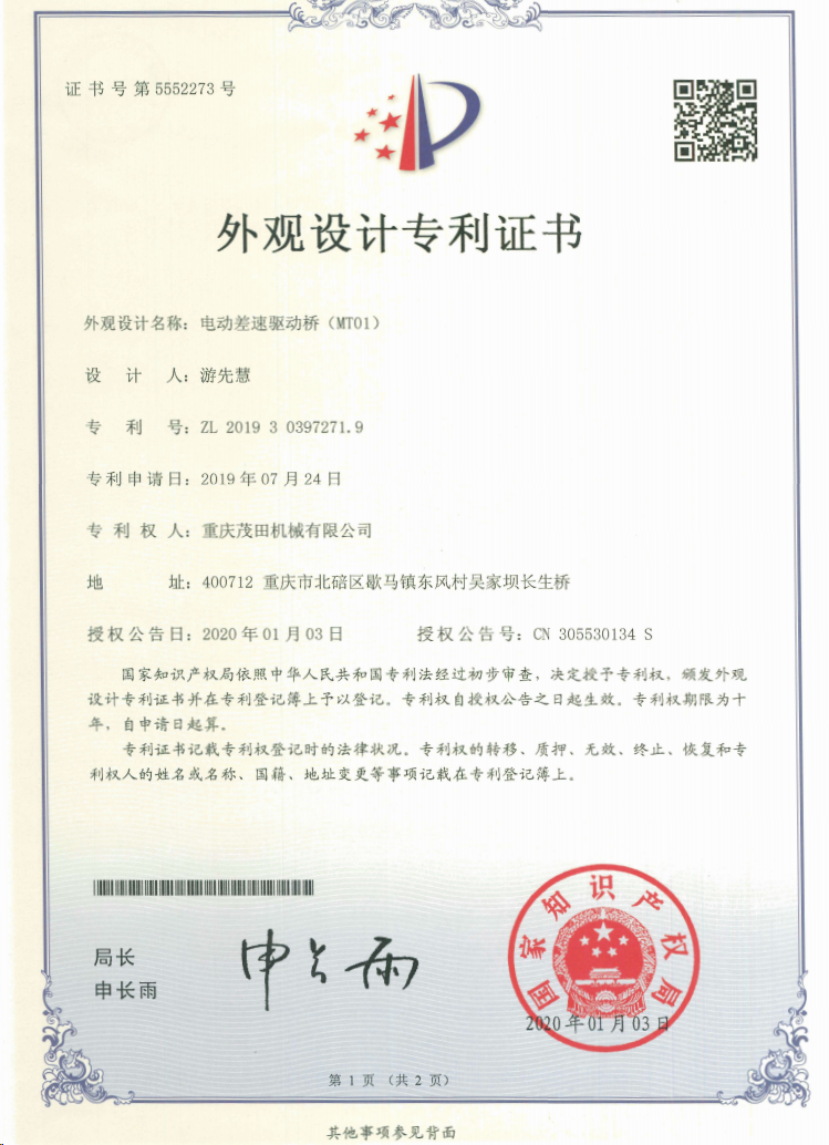 重慶茂田機械有限公司是國家級小巨人企業、國家高新技術企業、重慶市專精特新企業、重慶市知識產權優勢企業,致力于現代化山地農業機械、各類非標減速電機及其控制系統的研發、生產、銷售。擁有重慶市市級研發平臺1個 目前研發、生產、銷售產品廣泛應用于農業機械、醫療康復設備、交通代步工具、智能搬運設備、以及機器人動力系統等領域。我們的產品具有完整的自主知識產權,擁有多項專利技術及“重慶